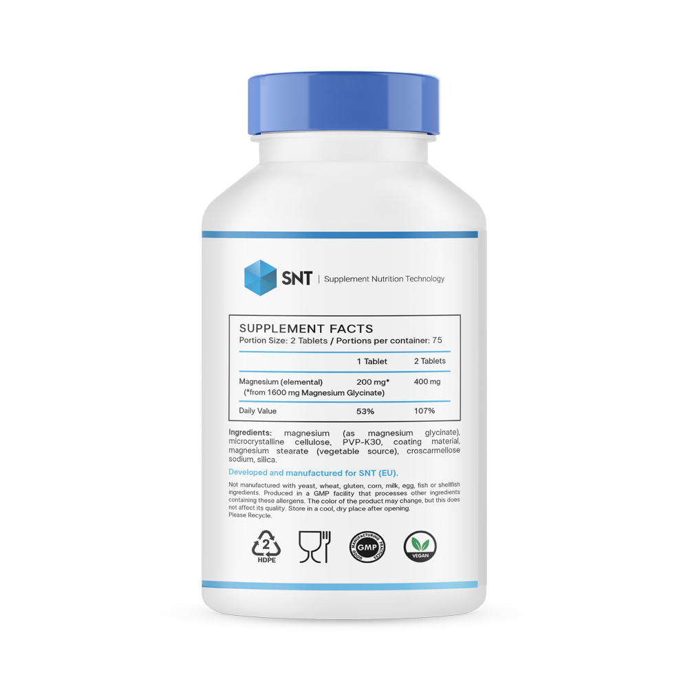 Magnesium Glycinate - это препарат магния, который обладает высокой биодоступностью и хорошо переносится организмом. Дополнительный прием поможет вам нормализовать сердечный ритм, снизить АД, купировать судороги в мышцах, повысить жизненный тонус и настроение, умственную и физическую активность, уменьшить боли в суставах.