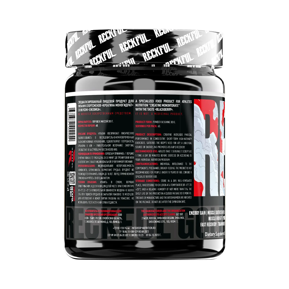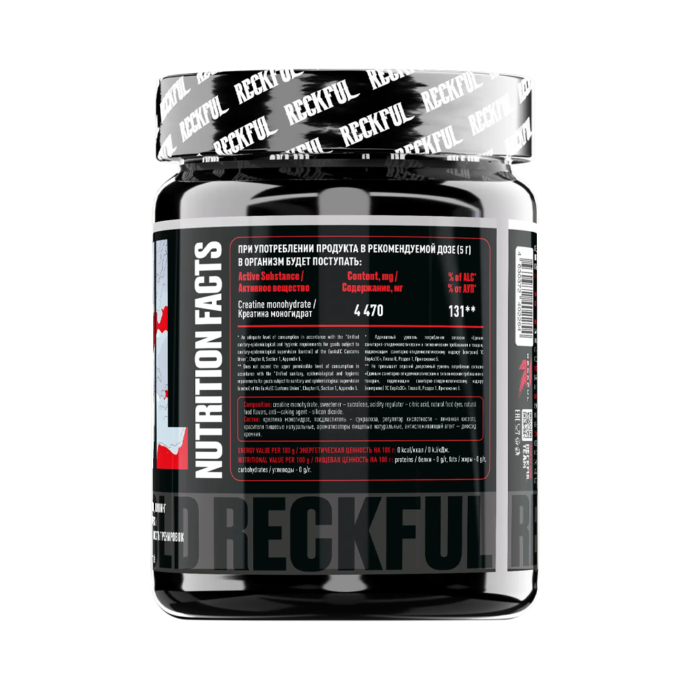 Reckful ® Creatine Monohydrate 300 грамм – это улучшенная формула креатина для тех, кто стремится к улучшению силовых показателей, выносливости и быстрому восстановлению. Креатин моногидрат является одной из самых эффективных добавок для увеличения мощности, помогает вам достигать новых высот в тренировках и ускоряет процесс восстановления. С добавлением ярких вкусов процесс приема креатина станет не только полезным, но и приятным.