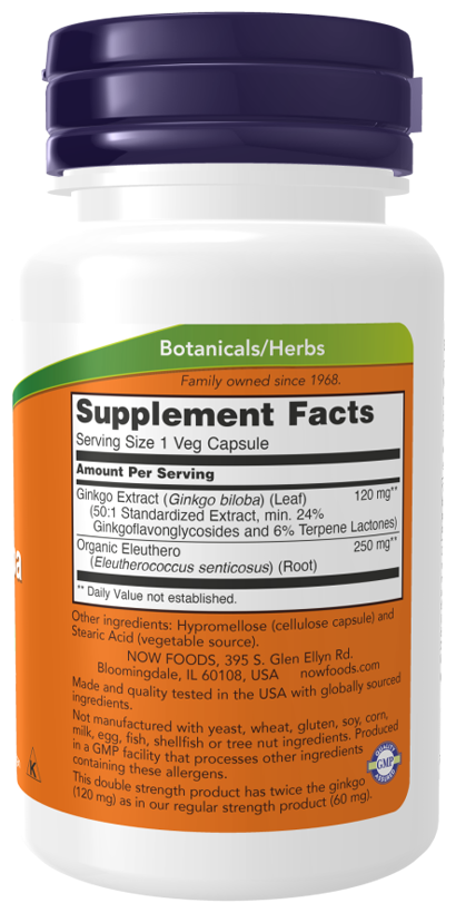 Экстракт гинкго билоба от Now стандартизирован до мин. 24% гинкгофлавонгликозидов и 6% терпеновых лактонов. Экстракт получают из листьев знаменитого дерева гинкго, которое росло на земле на протяжении миллионов лет.