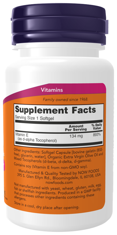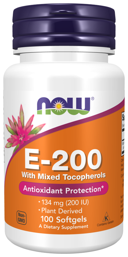 NOW Vitamin E-200 With Mixed Tocopherols, 100 капсул